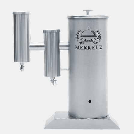 Заключительная ступень очистки - классический сухопарник. Сажа и остаточный конденсат оседают на стенках и дне, а дым проходит финальную стадию охлаждения. Мощный компрессор, оснащённый двумя ступенями регулировки, обеспечивает бесперебойную подачу дыма в коптильную камеру.